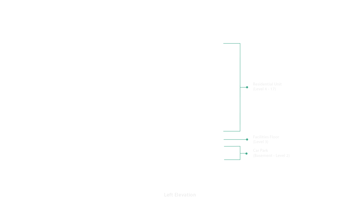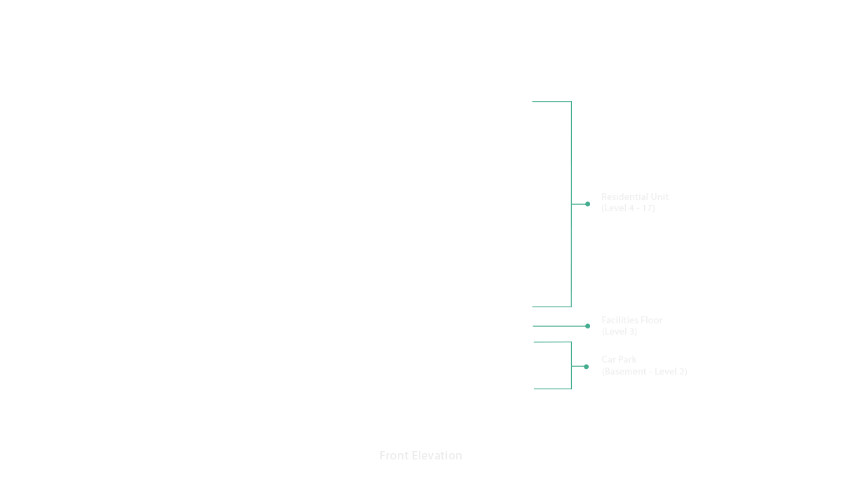 The recreation level above the condominium podium block offers a swimming pool, the focal point of social interaction. The design adopts the “Modern Balinese Chic” design concept. Adjacent to the swimming pool, are facilities such as a gymnasium with full height glass window, sun bath deck, cafeteria, multi-purpose hall, prayer room, changing room and playground.